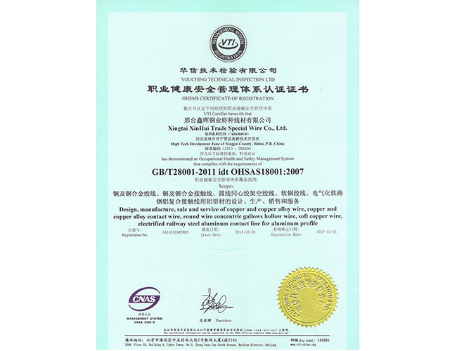 XINGTAI XINHUI COPPER SPECIAL WIRES COMPANY LIMITED